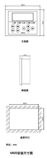 显示模块 M920显示模块为分体式,可安装在开关柜面板,显示所有电参量,并可进行参数整定。